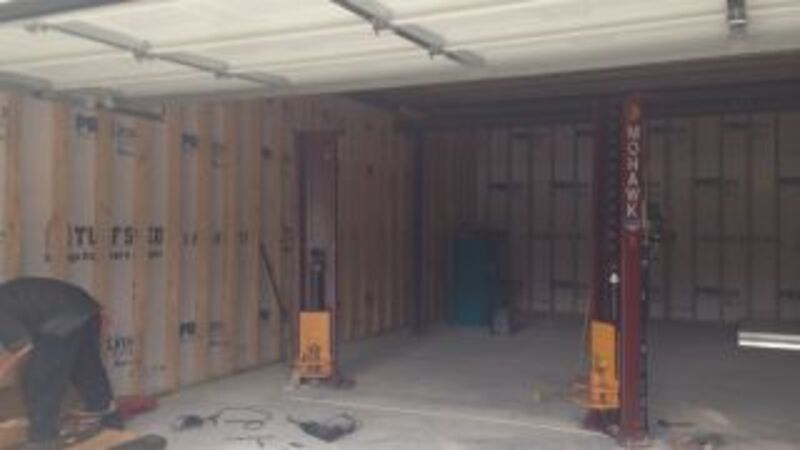 No picture from this afternoon where it’s fully installed because it was raining like hell all day. Here’s this morning after they got it off the truck and got the columns stood up but not yet placed.